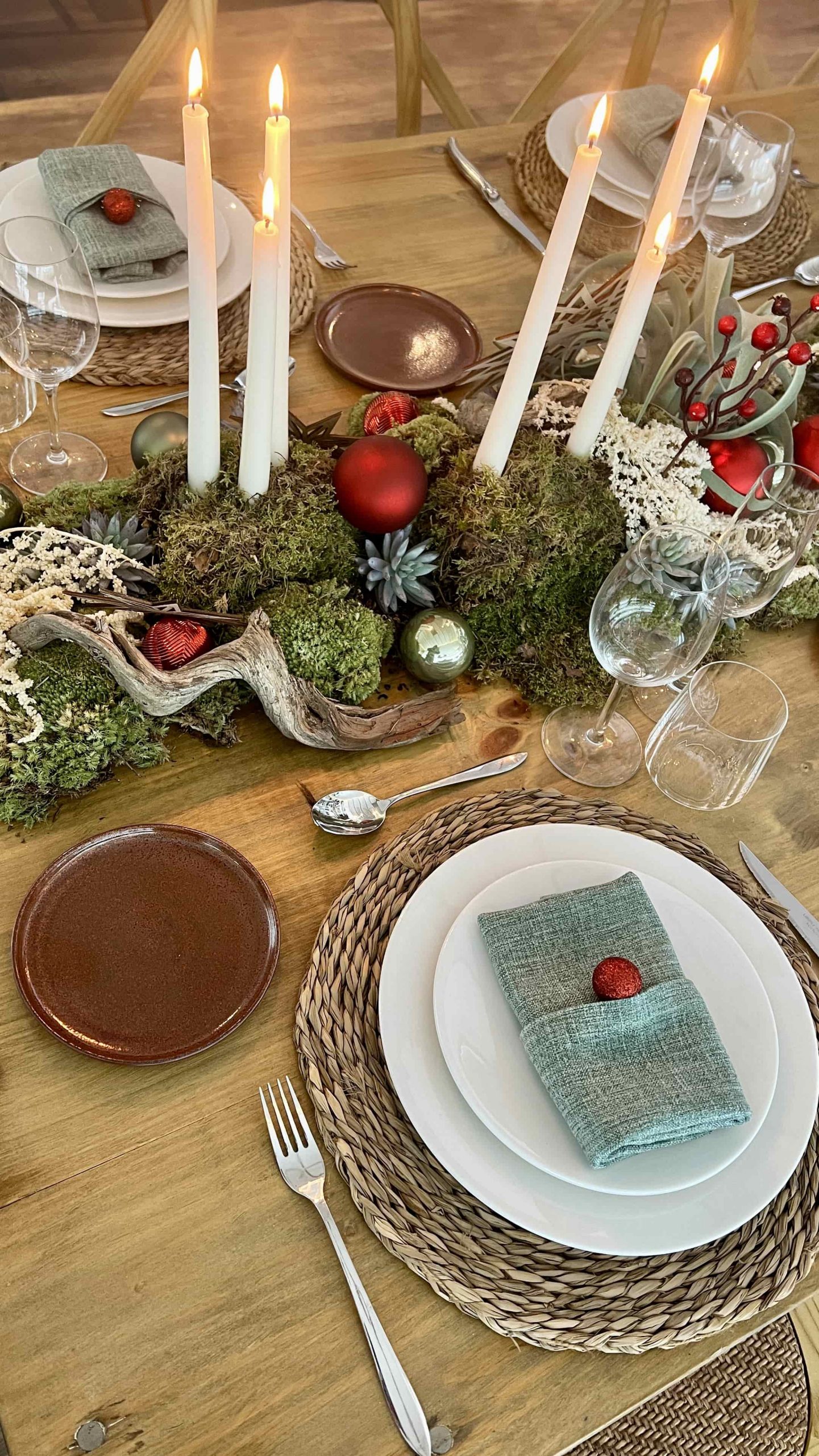 - Apostar por la decoración floral navideña: plantas artificiales o naturales, ramas, piñas, flores rojas y blancas, combinadas con textiles y vajillas.