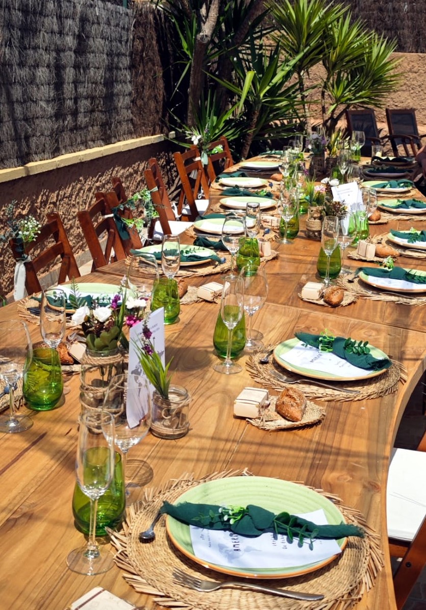 La Vajilla Menta, en ese tono verde pastel tan característico, ha sido una de nuestras grandes sorpresas. Cuando la incorporamos hace un tiemp no imaginábamos que se convertiría en una de las más solicitadas. Su color suave y su textura artesanal la hacen perfecta para eventos primaverales y celebraciones con paletas de color naturales.